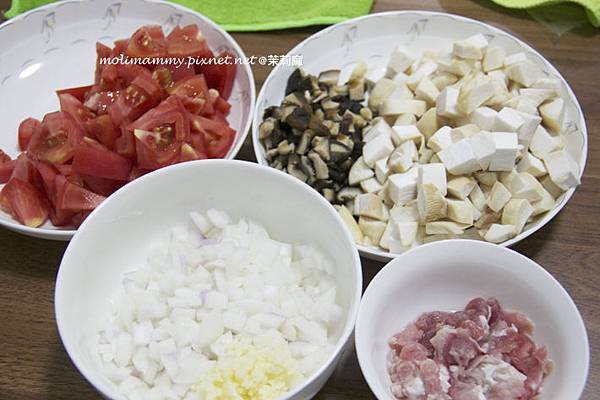 4. 番茄、香菇、杏鮑菇洗淨,切小塊