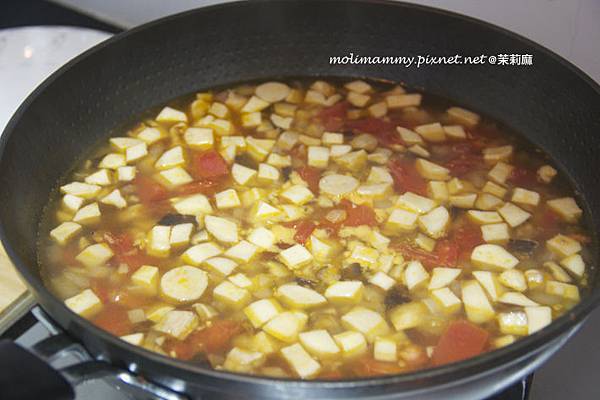 Step4:待所有料炒至半熟,加水加至蓋過所有料,煮開後放入調味料調味就完成囉!